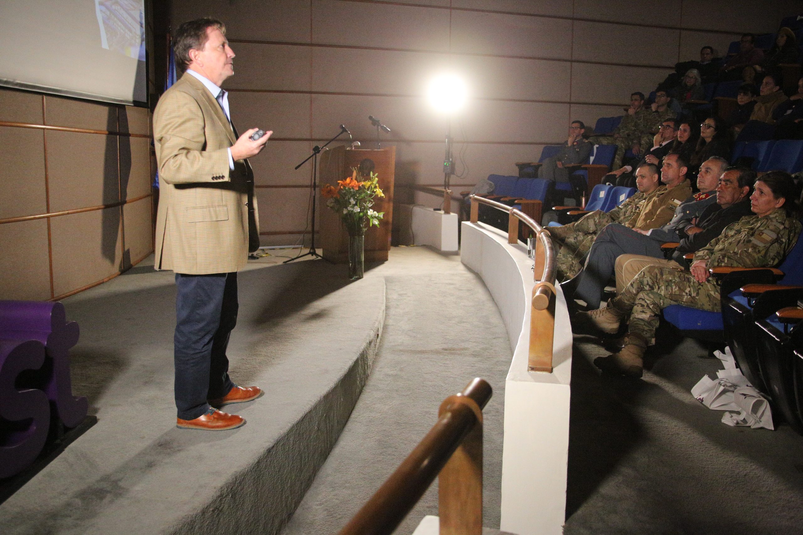 La actividad continuó con la exposición del Teniente Coronel, Felipe Olea Popelka, Jefe del Departamento de Liderazgo de la Academia de Guerra del Ejército, titulada “Expedición Everest 2012: forjando resiliencia”, quien se refirió a la importancia de esta característica humana, a través de exponer su testimonio, como como jefe del equipo militar de montaña, en la expedición chilena para alcanzar la cumbre del Monte Everest, realizada junto a la agrupación Rodrigo Jordán, el año 2012.