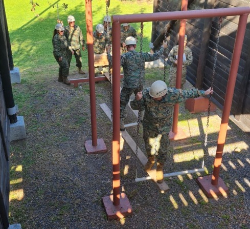 Para potenciar el liderazgo y el trabajo en equipo, 32 integrantes del Centro de Reserva del Hospital Militar de Santiago (HMS) participaron en una jornada de entrenamiento, en la Cancha de Reacción de Líderes de la Escuela Militar.