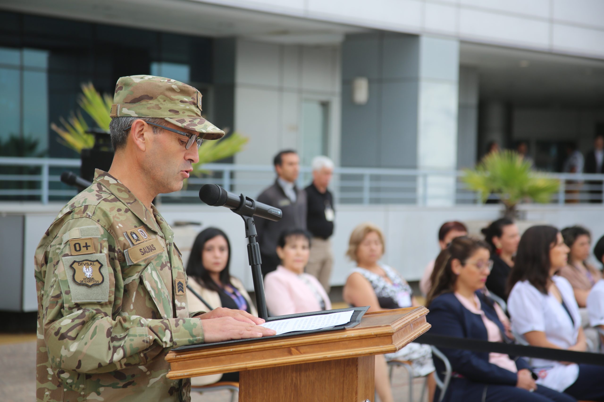 Posteriormente, el Suboficial Mayor Luis Salinas Ávila, Ayudante de la Dirección del HMS, leyó la resolución que dispone el cambio de mando de la Dirección de Administración y Finanzas, dejando el cargo el Coronel Jorge Gómez Ortiz y asumiendo la Coronel Paula Vargas Montes.