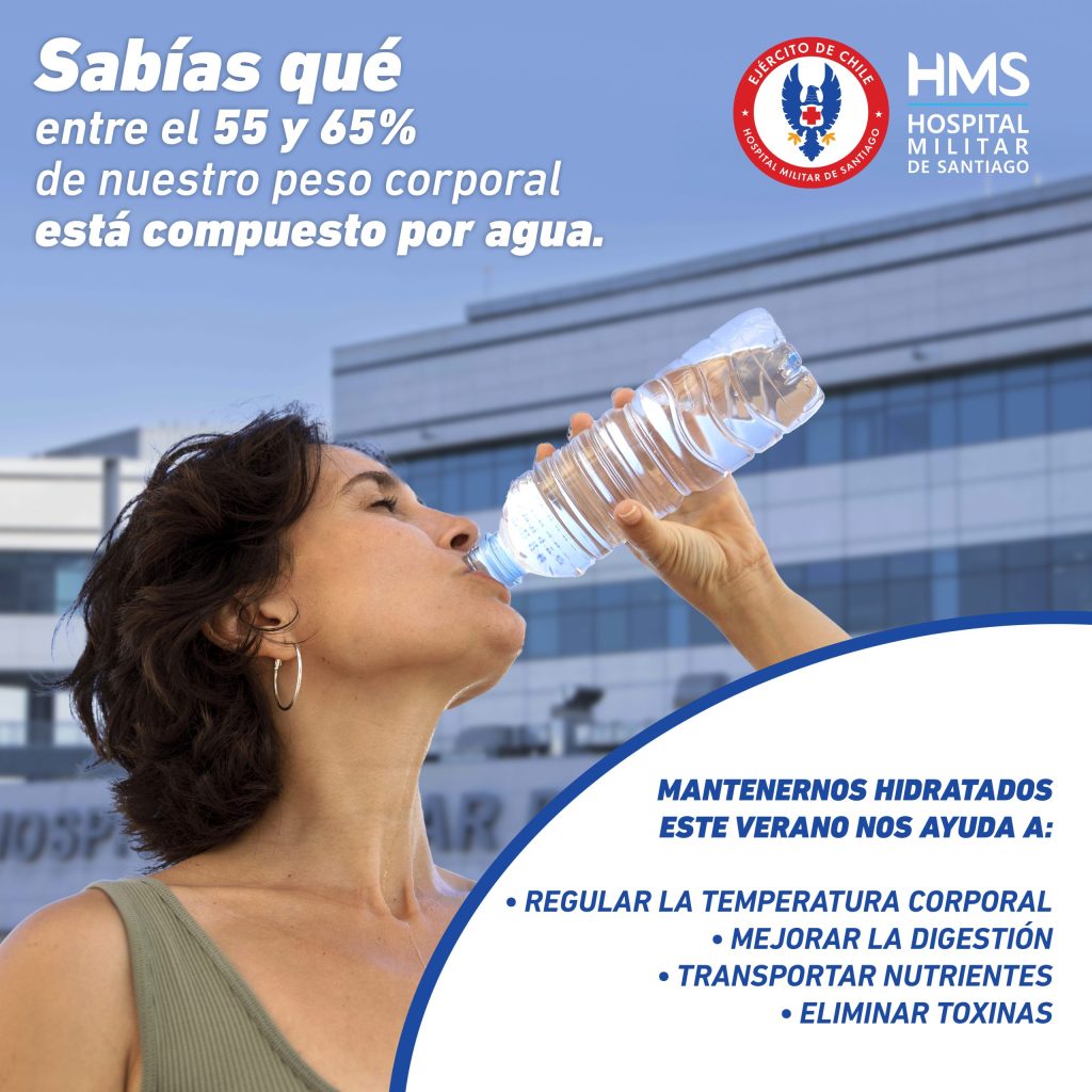 La nutricionista Teresita Latorre González, parte del Equipo de Nutrición y Diabetes del Hospital Militar de Santiago (HMS), nos explica que tener una buena hidratación nos ayuda a: