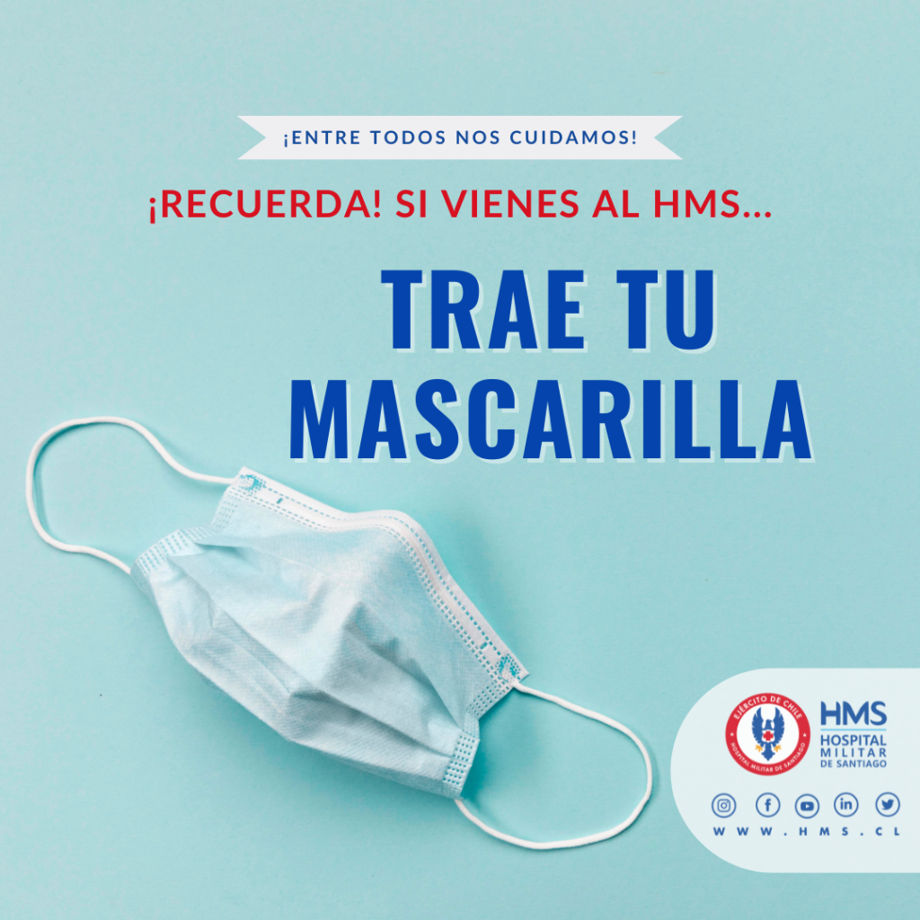 Desde que el Ministerio de Salud decretara la obligación del uso de mascarillas en Servicios de Urgencia, el pasado 1 de abril, el Hospital Militar de Santiago implementó además, que quienes vienen a visitar a enfermos al edificio de hospitalización, también deben usarlas en todo momento.