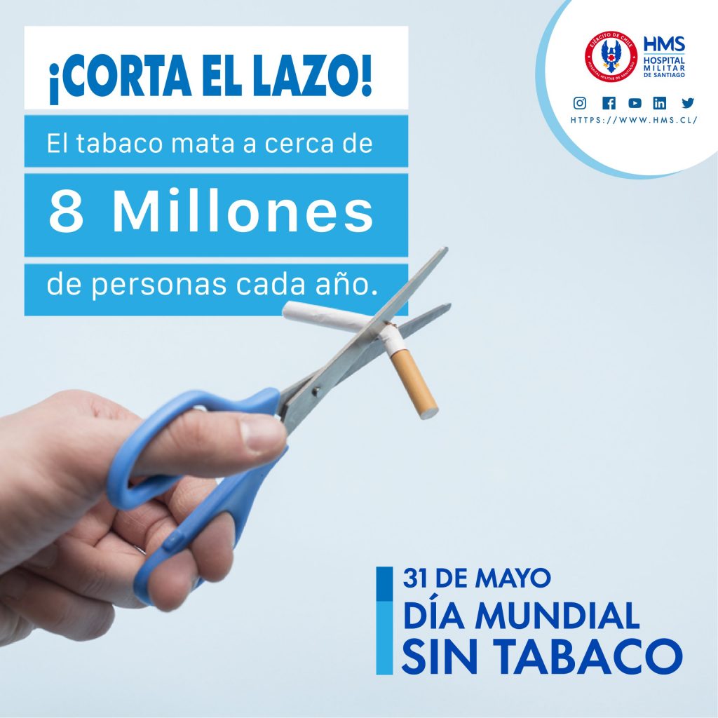 Según cifras oficiales, en el mundo existen alrededor de 1.300 millones de consumidores de tabaco y es el mismo tabaco el que mata a cerca de 8 millones de personas cada año. De ahí que el Hospital Militar de Santiago (HMS) se sume una vez más a esta importante causa a nivel global.