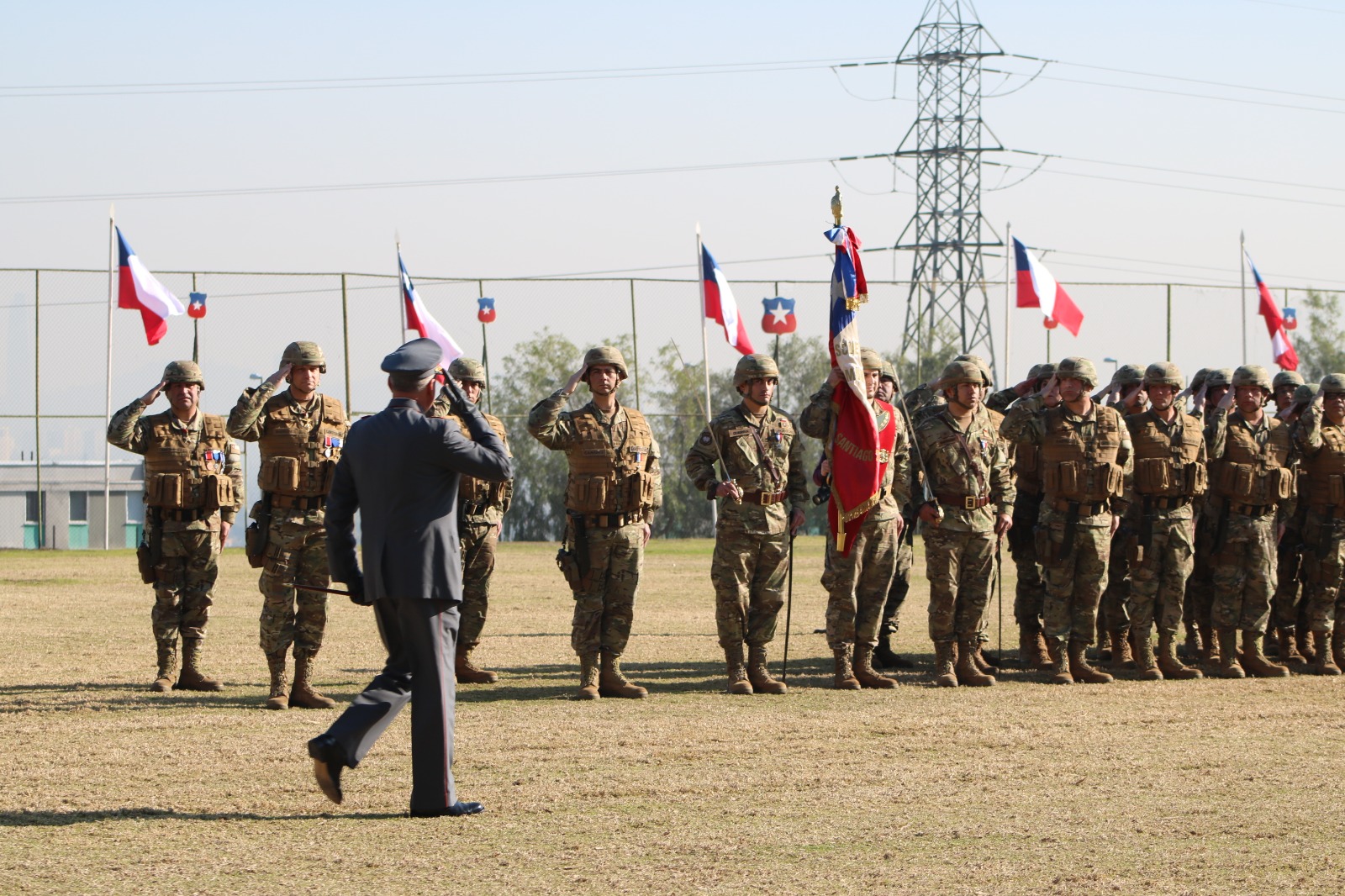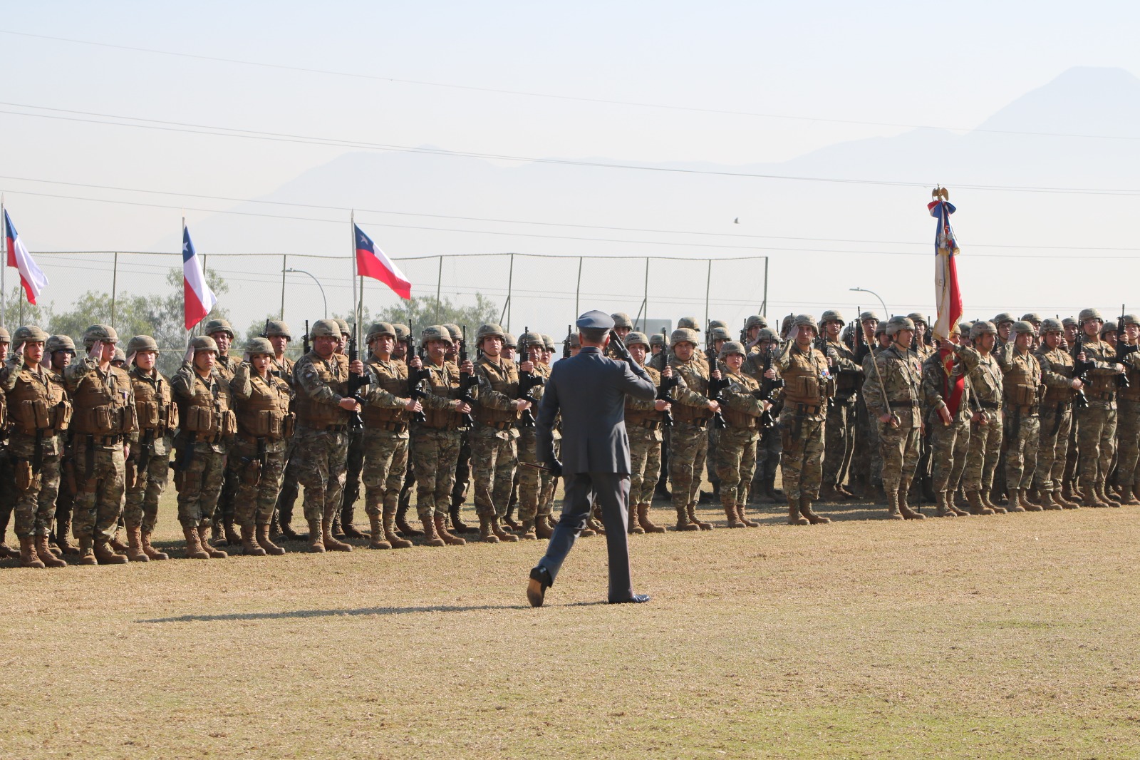 Tras sus palabras y al compás del himno “Adiós al Séptimo de Línea”, el Estandarte de Combate procedió a tomar posición frente a cada una de las unidades de formación para llevar a cabo el Juramento a la Bandera. Fue así que, por parte del HMS, primero juraron los Oficiales y luego los Suboficiales de la Reserva Militar, como parte de la Guarnición de Santiago.