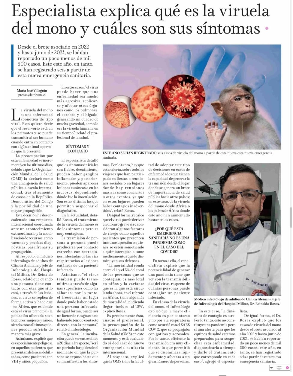 El Doctor Reinaldo Rosas Benito, Jefe del Servicio de Infectología del HMS, comenta que “se está viendo que es una cepa que tiene un nivel de letalidad más alta que el brote que vivimos el año 2022. Y si bien es una enfermedad que no es grave en la mayoría de las personas, hay personas con las defensas bajas, con enfermedades crónicas o niños donde si puede volverse grave y severa”.