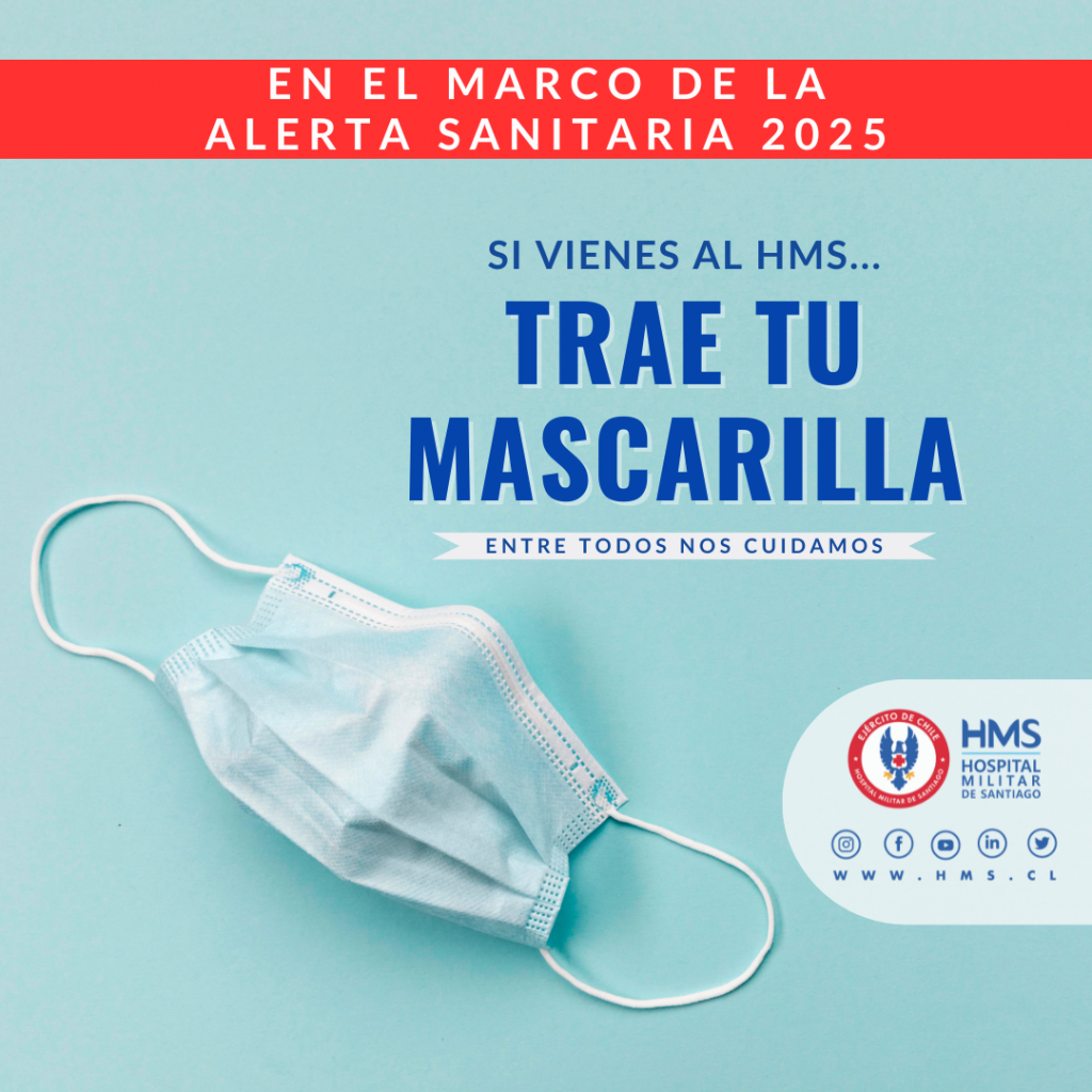 Por tal motivo, a partir de hoy el Hospital Militar de Santiago (HMS) exigirá el uso de mascarillas al ingresar al Servicio de Urgencia Adulto (SUA).